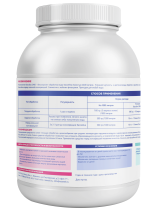 «Бесхлорная» обработка воды бассейна емкостью 2400 литров. Устраняет мутность и цветение воды, борется с налетом на стенках и дне бассейна. Эффективен для обработки бассейна перед сезонной консервацией. Совместим с любыми фильтрами. Пригоден для любой воды.